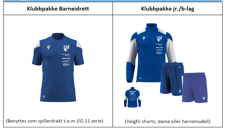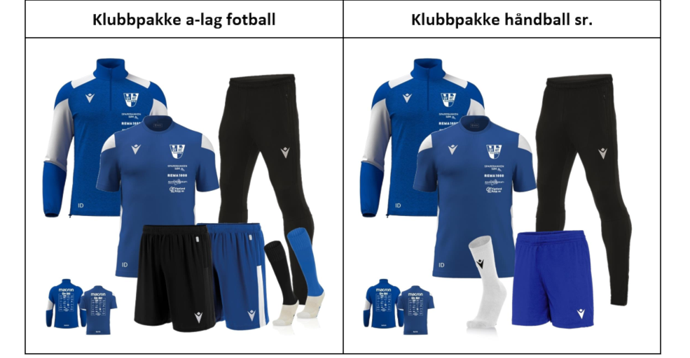 - Klubben dekker klubbpakke iht beskrivelse i plansje nedenfor. Tildelt klubbpakke er til privat eie. I tillegg holder klubben drakter til alle lag/spillere. Ta kontakt med trener dersom du ikke har drakt. Forutsetning for tildeling av klubbpakke er at utøver har gyldig medlemskap.
