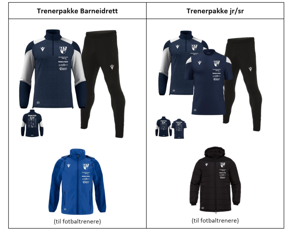 - Trenerpakke jr/sr gjelder for trenere av junior og seniorlag i håndball, fotball, friidrett, basisball og Trim 50+. Forutsetning for tildeling av trenerpakke er at trener har gyldig medlemskap, politiattest, treneravtale og trenerattest på plass.